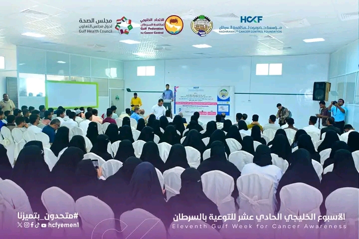 الوكيل العامري يدشّن فعاليات الأسبوع الخليجي للتوعية بالسرطان بسيئونمتابعات عين المكلا|سيئون / الاحد1 فبراير 2026م/مكتب اعلام الوكيل دشّن وكيل محافظة حضرموت لشؤون مديريات الوادي والصحراء، الأستاذ عامر سعيد العامري، اليوم بمدينة سيئون، فعاليات الأسبوع الخليجي للتوعية بالسرطان، التي تنظمها مؤسسة حضرموت لمكافحة السرطان “أمل” بوادي وصحراء حضرموت، بالشراكة مع عمادة كلية المجتمع بسيئون، وبالتنسيق مع المجلس الطلابي بالكلية، تحت شعار “التغذية السليمة لمكافحة السرطان”.وتهدف الفعاليات، التي تستمر على مدى أسبوع، إلى تعزيز الوعي الصحي في أوساط المجتمع، ونشر ثقافة الوقاية من مرض السرطان، وتسليط الضوء على أهمية الكشف المبكر، واتباع أنماط الحياة الصحية، بما يسهم في الحد من انتشار المرض وآثاره الصحية والاجتماعية.وأكد الوكيل العامري أهمية الفعاليات التوعوية المصاحبة للأسبوع الخليجي الحادي عشر للتوعية بالسرطان، مشيدًا بالدور الحيوي الذي تقوم به المؤسسات التعليمية ومنظمات المجتمع المدني في تنفيذ مثل هذه الأنشطة الهادفة. وأوضح أن كل جهد توعوي، مهما بدا بسيطًا، يترك أثرًا كبيرًا في المجتمع، منوهًا إلى أن كلية المجتمع بسيئون أُنشئت لخدمة المجتمع، وكانت ولا تزال حاضرة في مختلف الأنشطة التوعوية، ولديها قصص نجاح يُفخر بها، معربًا عن شكره وتقديره للمنظمين والداعمين لإنجاح هذه الفعاليات.من جانبه، أكد عميد كلية المجتمع بسيئون، الدكتور فهمي فراره، حرص الكلية على الإسهام الفاعل في خدمة المجتمع، وتعزيز الشراكة مع الجهات ذات العلاقة في تنفيذ البرامج التوعوية التي تستهدف مختلف فئات المجتمع، لا سيما فئة الشباب والطلاب.بدوره، أوضح المدير التنفيذي لمؤسسة حضرموت لمكافحة السرطان “أمل”، الأستاذ سالم باجري، أن المؤسسة تولي جانب التوعية أهمية كبيرة، من خلال تنفيذ نزولات ميدانية إلى الأودية والقرى النائية، وزيارات للمرافق التعليمية باعتبارها بيئة أساسية لنشر الوعي الصحي السليم، إضافة إلى تسيير عيادات مجانية للكشف المبكر، وتقديم الدعم المالي والنفسي والتوعوي لمرضى السرطان. وأشار إلى أن تسجيل 655 حالة سرطان جديدة خلال العام الماضي يستدعي مضاعفة الجهود التوعوية.وشهدت الفعالية، التي حضرها مدير عام الإعلام الأستاذ رشيد العامري، ومدير عام المركز الوطني لمختبرات الصحة المركزية الدكتور نبيل باعباد، وعدد من المختصين، إطلاق مبادرة “خطوة إنسان” التطوعية، التي تهدف إلى تقديم الدعم الإنساني والاجتماعي للفئات الأكثر احتياجًا، مع التركيز على دعم التعليم والتخفيف من الأعباء المادية عن الطلاب المتعثرين، بما يضمن استمرار مسيرتهم التعليمية، في إطار رؤية تسعى إلى تحويل التحديات إلى فرص وتحقيق تمكين حقيقي في المجتمع.https://www.facebook.com/share/p/1AMrUR4UDh/📌 للمزيد من الاخبار تابعو حساباتنا : عين المكلا على فيسبوك:/https://www.facebook.com/share/1CjTdLdUj9/ 📲 مجموعة واتساب: مجتمع عين المكلاhttps://chat.whatsapp.com/Et84KG9tuFpLxzUogFruFW?mode=ac_t قناة عين المكلا في واتساب: https://whatsapp.com/channel/0029VaQIAABDDmFd3ia3Ln2v